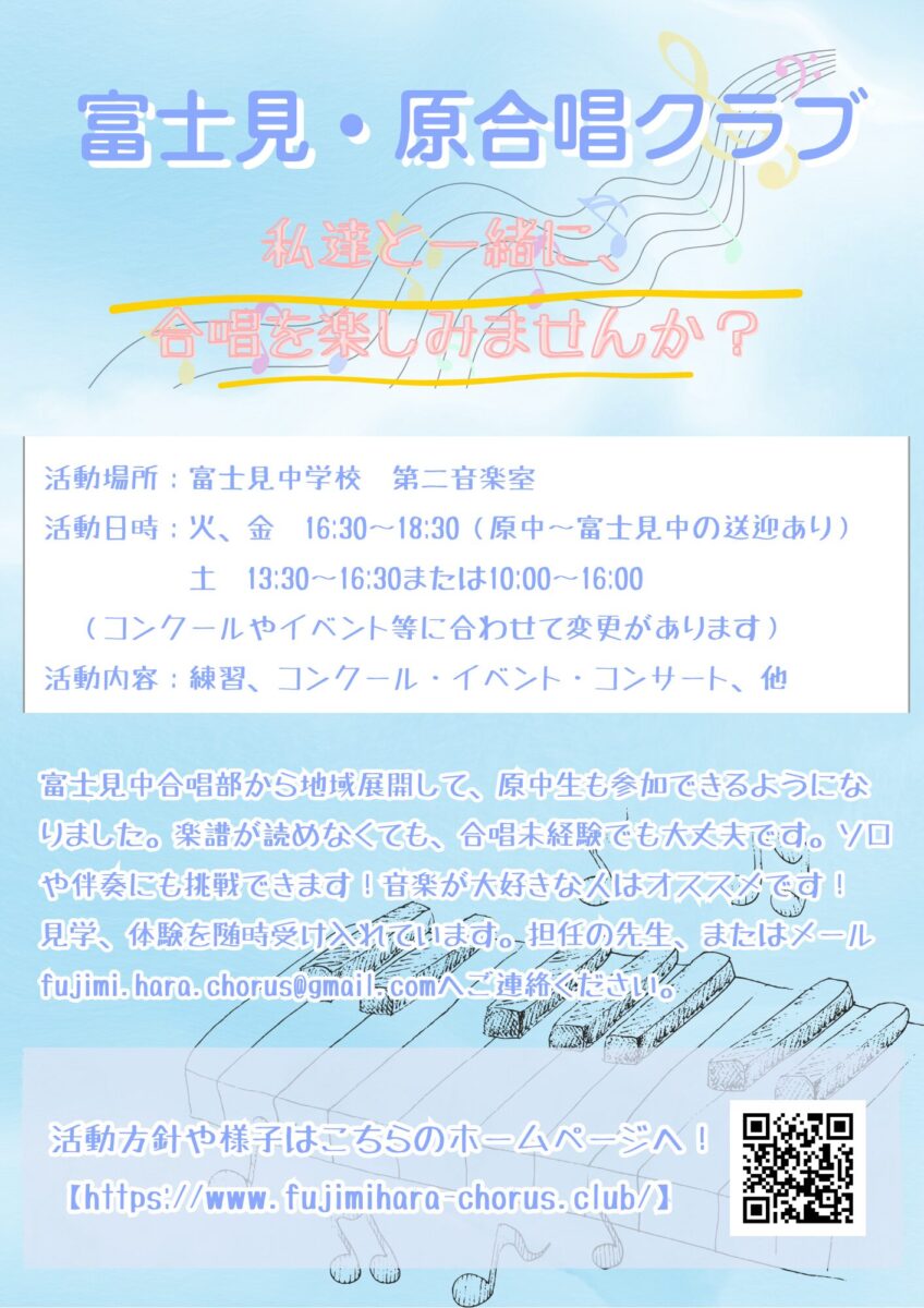 見学や体験は随時受け入れています。今年度も富士見・原合唱クラブをよろしくお願いいたします!